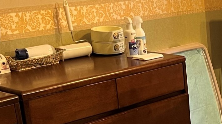 愛犬用のグッズは除菌スプレーと餌入れとトイレがあります。